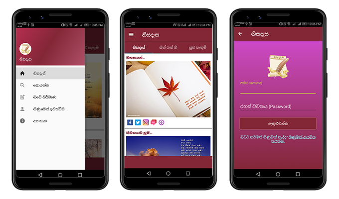 Nisadasa mobile app allows to publish greetings and thoughts in a poetic way in sinhala language.